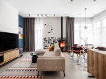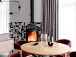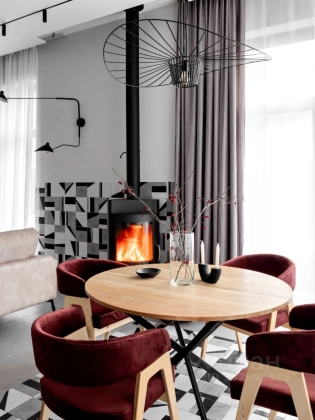 - кухня-гостиная с поворотным дровяным камином, столовая зона с прямым выходом на террасу первого этажа